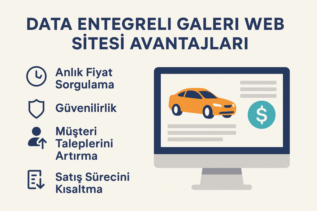 Galeriler için hazırlanan modern web siteleri artık sadece ilan yayınlama platformları değil. Günümüzde data entegrasyonu sayesinde bu siteler; araçların piyasa değerlerini anlık hesaplayabilen, müşteri taleplerini yöneten ve satış sürecini hızlandıran güçlü yazılım altyapılarına dönüşüyor.